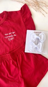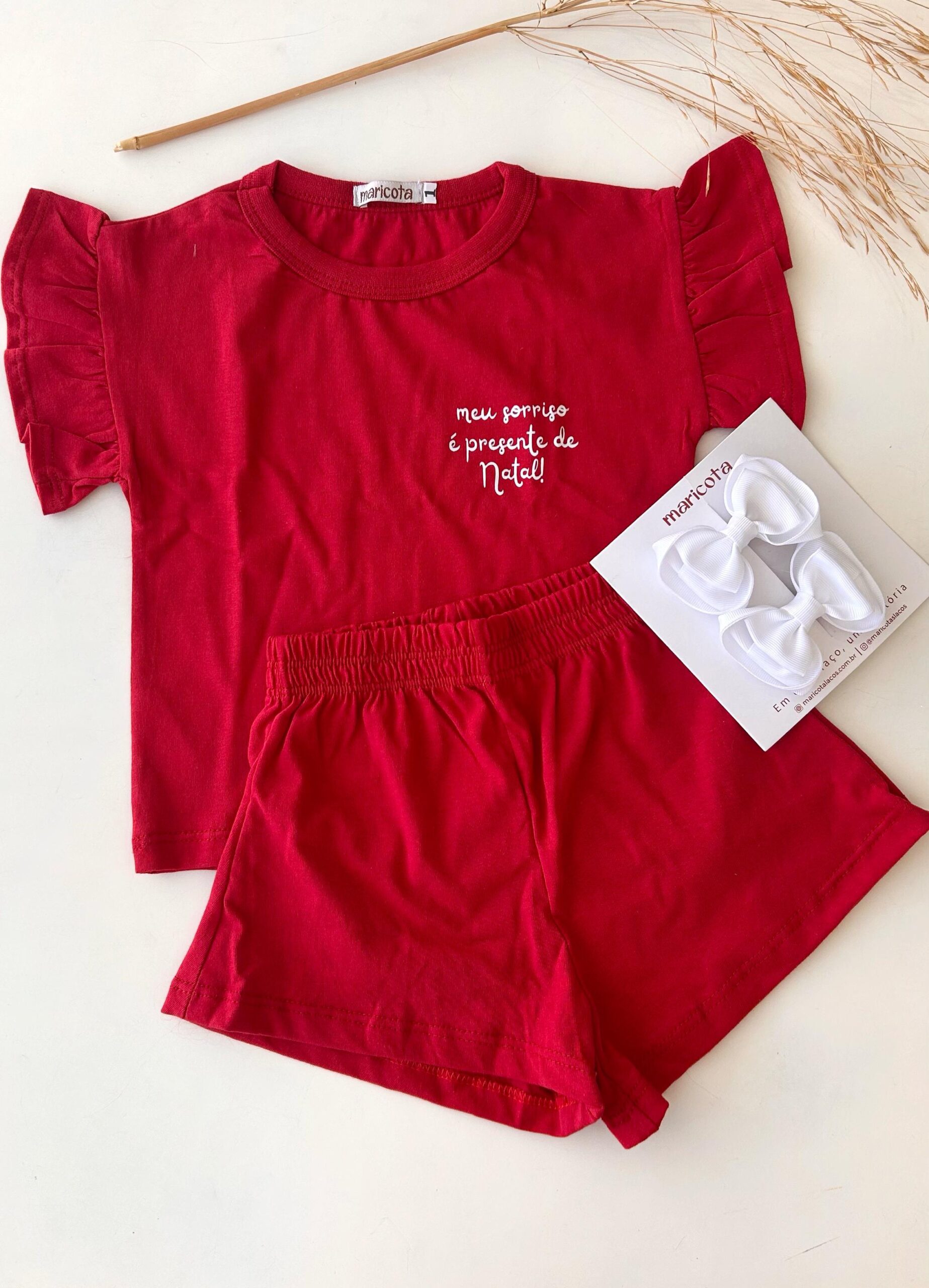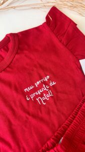 Conjunto em malha 100% algodão “meu sorriso é presente de Natal”.