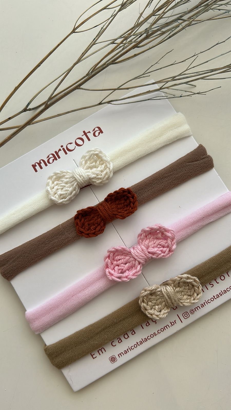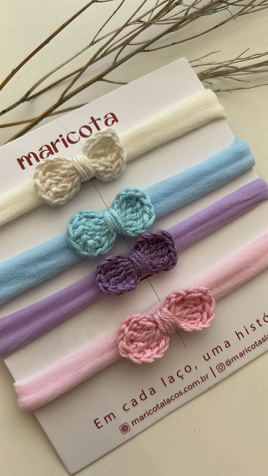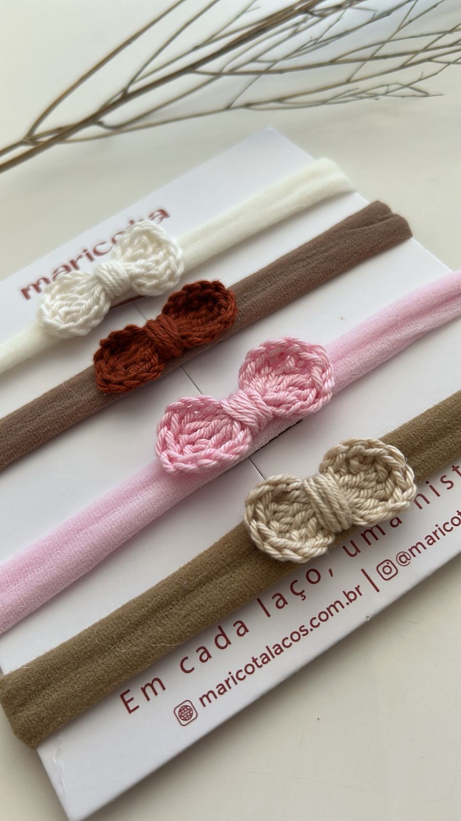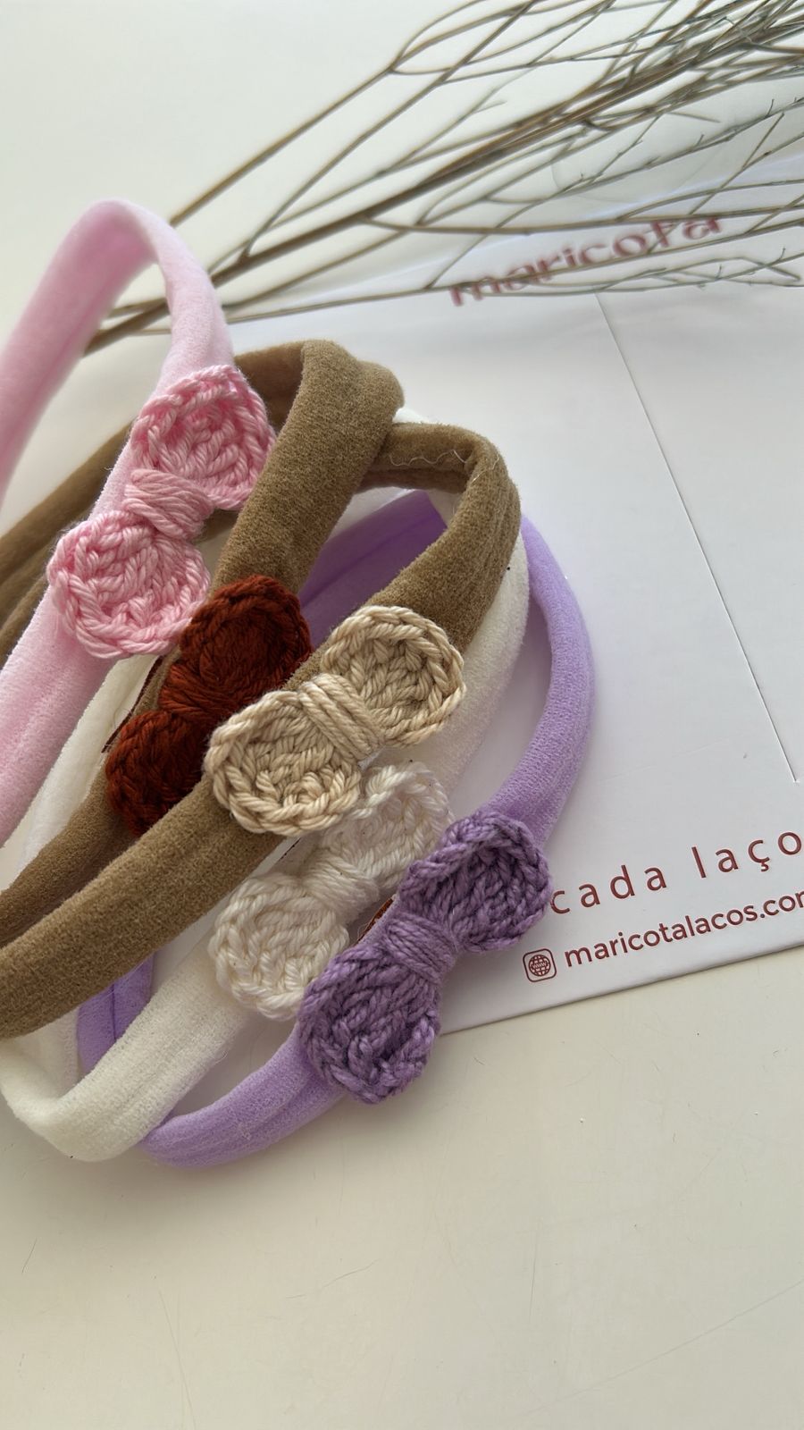 Laço crochê tamanho PP na faixa de meia