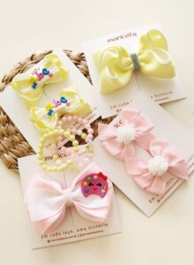 Kit escola composto de 2 laços individuais tamanho médio (aprox.10cm) e dois pares tamanho pequeno (aprox.6cm)