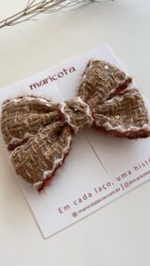 Laço Manu confeccionado em fita luxo com lantejoula.