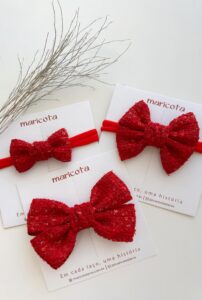 Laço Manu confeccionado em fita luxo com lantejoula.