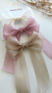 Laço Rosane confeccionado em fita de organza com leve brilho.