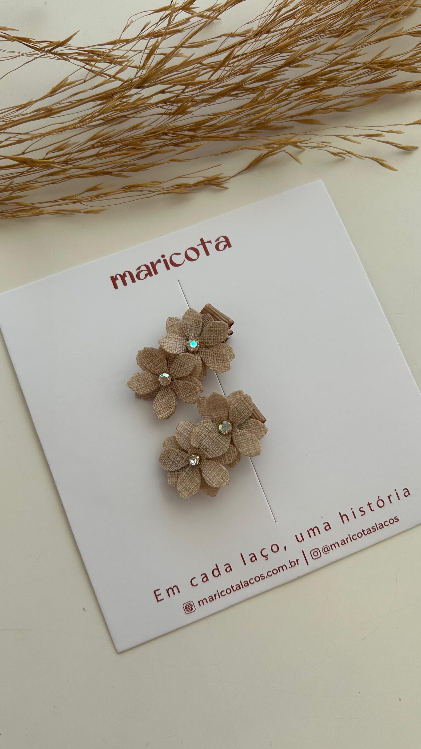 Par flor em linho com strass na presilha bico de pato coberto e com antiderrapante (para não escorregar e não machucar a cabeça da bebê).