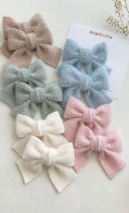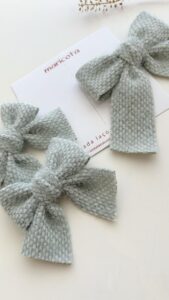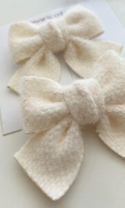 Par laço Dudinha confeccionado em fita luxo tipo pelúcia.