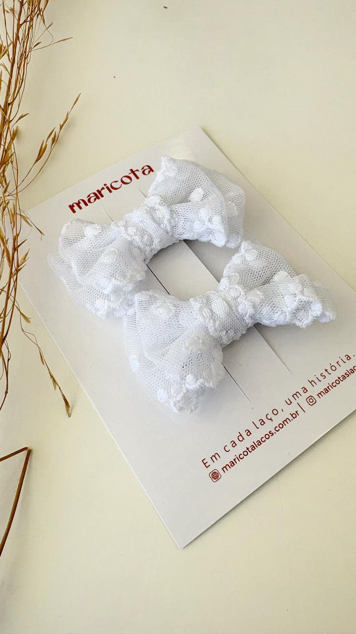 Par Liz duplo confeccionado em fita luxo cor branca.