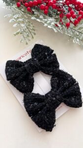 Par Manu confeccionado em fita luxo com lantejoulas.