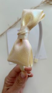 Laço Liz duplo confeccionado em fita luxo brilho na tiara coberta e com dentinhos (ajuda a não escorregar).