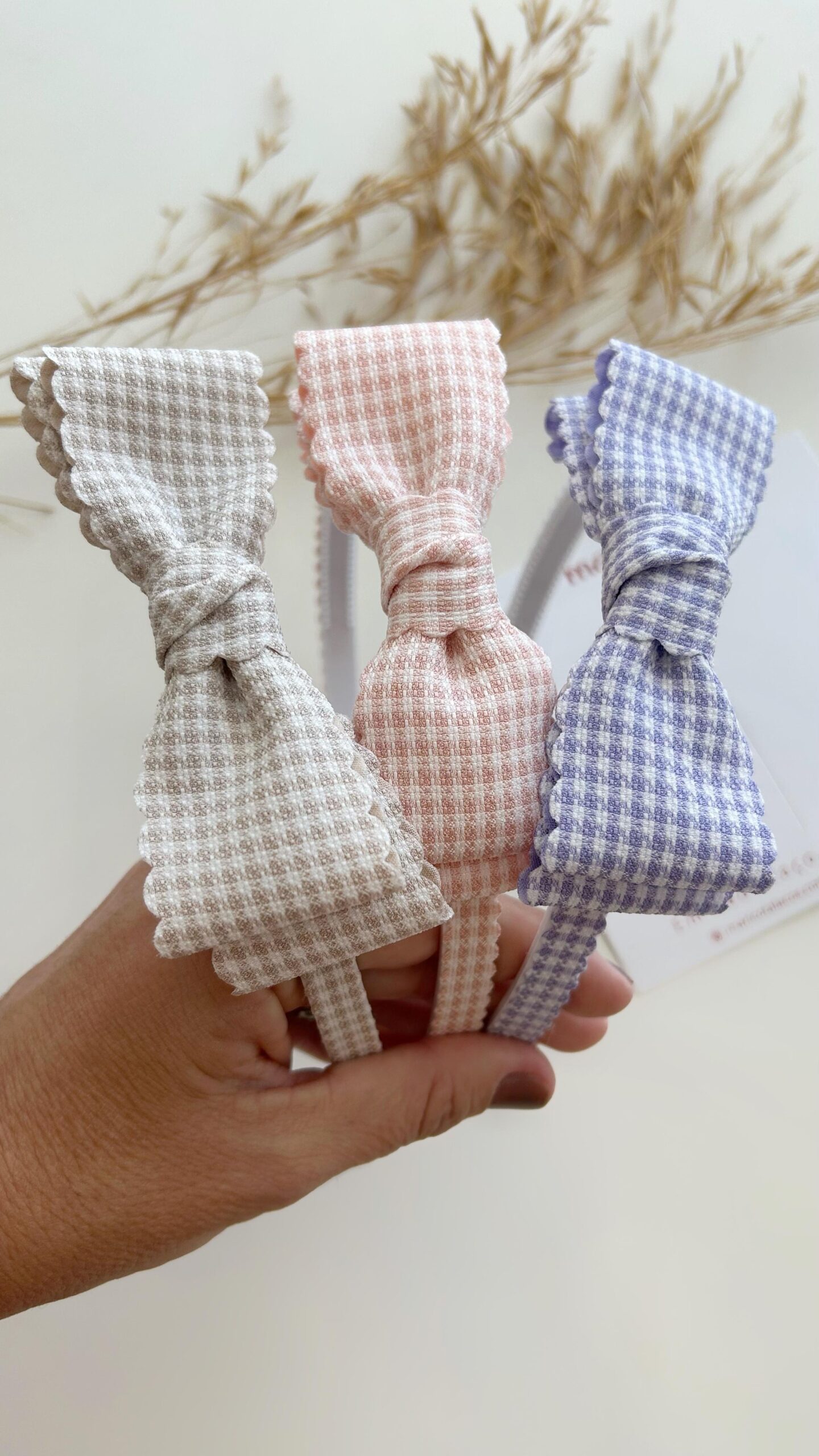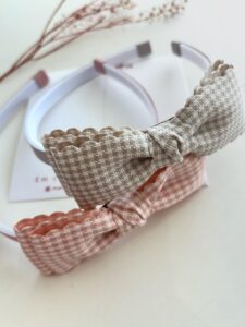 Laço liz duplo na tiara confeccionado em fita luxo xadrez
